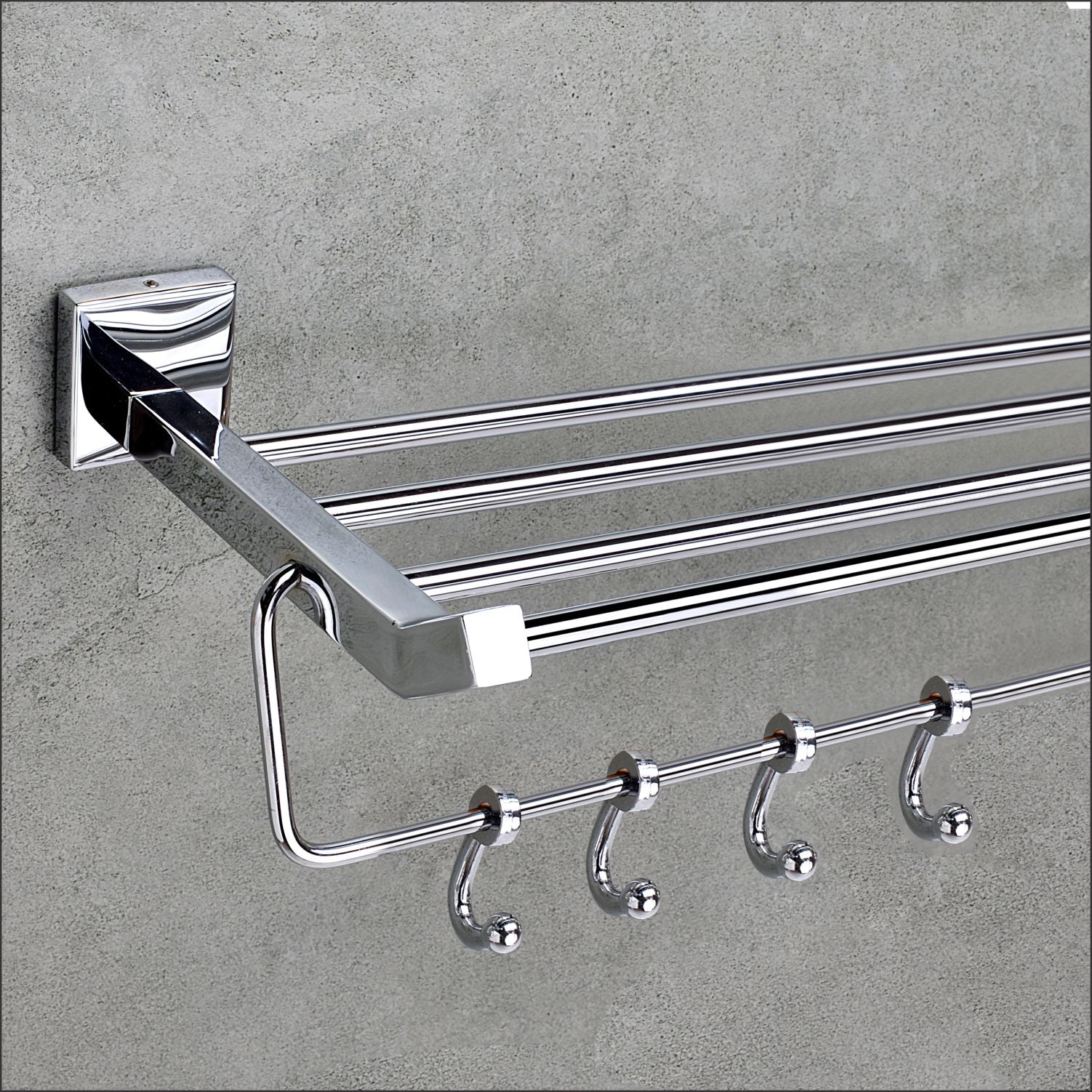 The Stainless Steel Square Cutter Rack combines style and functionality, and its sleek, modern form will improve your bathroom organization. This rack, with its distinctive square frame and precision-cut holes, adds a modern touch while providing durable storage for towels, toiletries, and bathroom supplies.